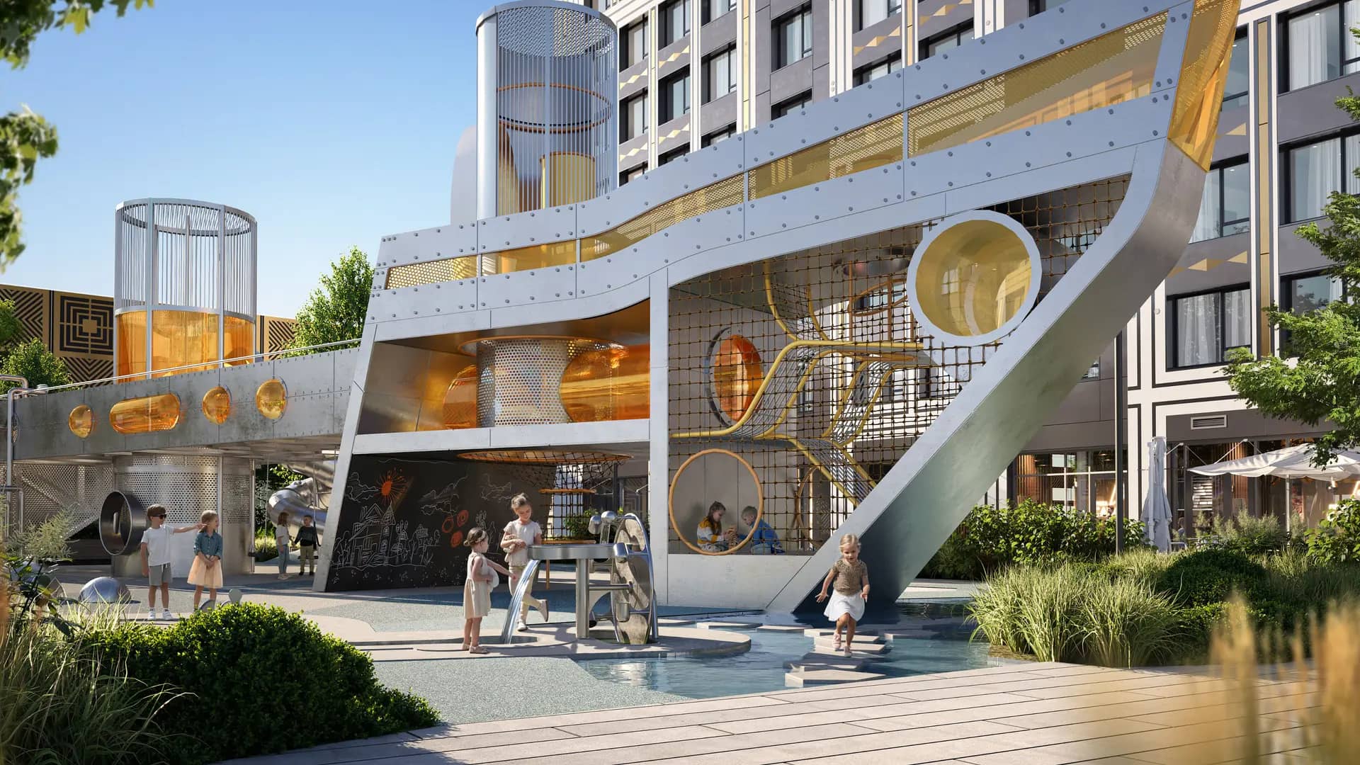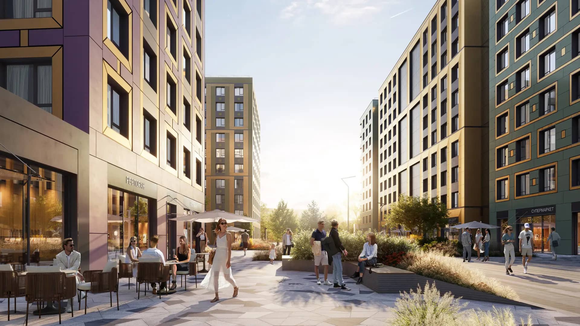 Прогулочный променад с зонами отдыха, детский плейхаб
